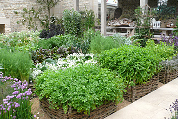 Grønsager som prydplanter var en tydelig tendens. Mange steder sneg flotte grønsager sig ind. Men i en enkelt have var grønsagerne helt i centrum. Del Buono Gazerwitz havde skabt »Summer Solstice«, en have med bl.a. udekøkken, kornmark og urtehave. Foto: Jens Thejsen