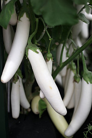 | Orange Turkey | Drivhus, Krukke | 60–70 dage | Fast kød og sødere smag end andre auberginer med et hint af peber. |