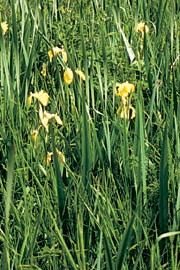 Gul iris i rørsump ved Vättern i Sverige. Foto: Jens Thejsen