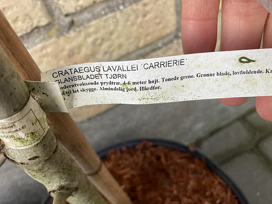 har netop får 5 glansbladet tjørn, Crataegus × lavalleei 'Carrierei' hjem. De er noget ranglede og måler omkring 240cm.