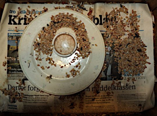 Men til trods for ballade med fedtkugler, så prøv at se nedenstående billede af bunden indvendigt i foderkassen, som blev renoveret for 40 dage siden (sv 49).