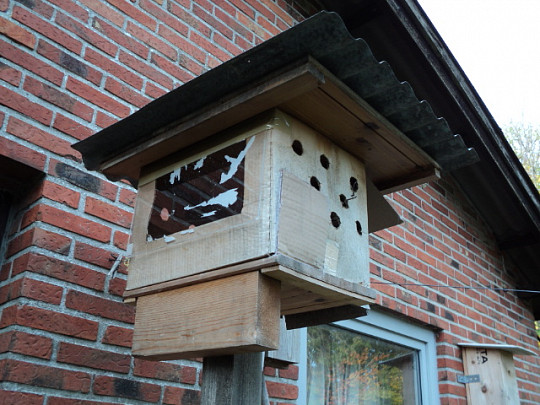Den er ikke så stor, men det gør måske ikke noget, især fordi den bliver med 28 mm huller, så kun de pressede blåmejser og fyrremejser kan deltage.