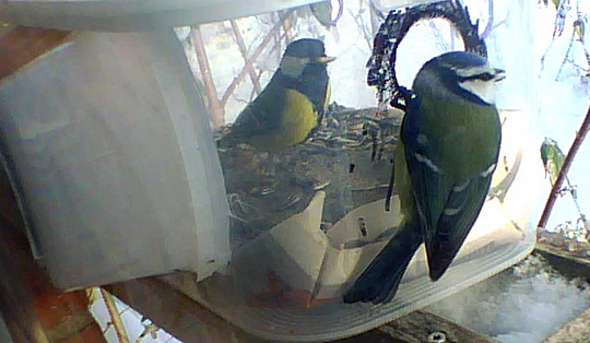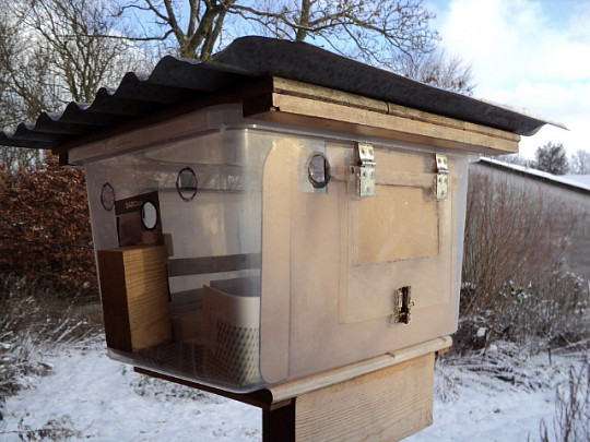 Jeg har i forbindelse med snefald set nogle af fuglene få betydeligt større problemer med at finde ud af den gennemsigtige foderkassen igen, efter de var kommet ind, og det dur ikke.