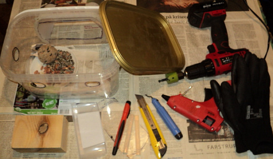 Og derfra er der ikke langt til også at bygge en foderkasse med et 28 mm hul.