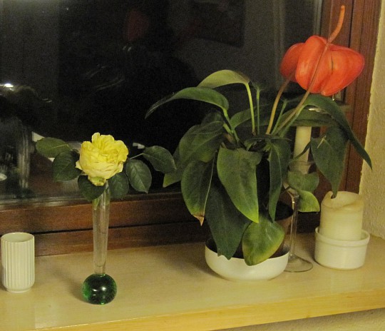 Og så er der lige en gul rose, som blev taget ind i eftermiddag d.22-12 og som nu dufter vidunderligt efter den kom ind i varmen :-)