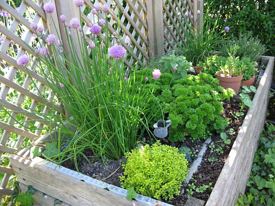 Jeg vil plante persille, citrontimian rosmarin og lavendel i krukken. Purløg kommer fint i højbedet. Men hvor skal jeg placere krukken?