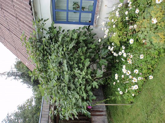 Hvis du planter figenen ½-1m. fra facaden, så får den størst mulig glæde af den akkumulerede varme fra facaden, - men figenen vil såmænd også gro længere fra facaden.!