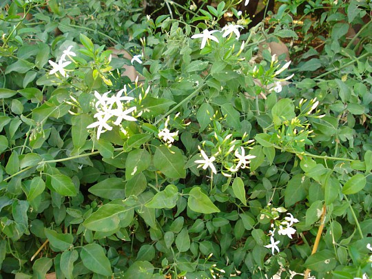 Hej kirsten....det ligner en jasmin art man kan købe som klatre plante om foråret...den kan man godt plante ud op ad mur med lidt vinterdækning og den vil skyde til foråret...