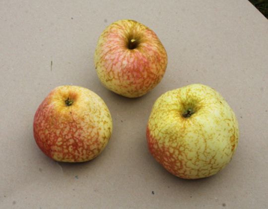 Efter udtynding og nogle hjorteangreb er der nu ca. 11 æbletræer tilbage ned nye æblesorter. Af dem er der ca. 8 æbletræer, som er blevet til udmærkede spiseæbler. Og 3-4 af æblerne er af topkvalitet. Og især 2 af æblerne er så gode, at de er helt på linie med de allerbedste spiseæbler. De 2 har jeg kaldt for "Guldæble fra Måre" og "Netæble"