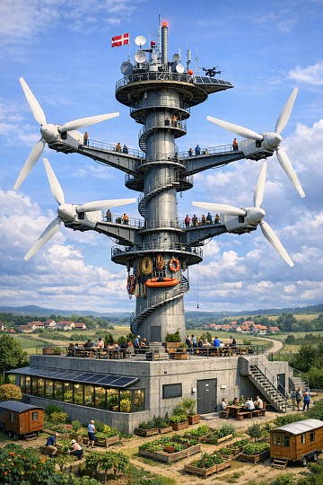 Og så venter jeg med gru på, at der kommer nogle frække unge mennesker, som har fået AI'en til at bygge noget tilsvarende blot med vandrutsjebane og svævebane og måske en overlevelsesbunker med en kæmpe scene til rock-koncerter med den fedeste lyssætning fra mølletårnet.