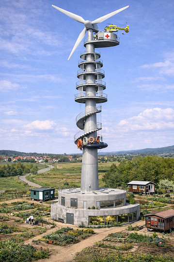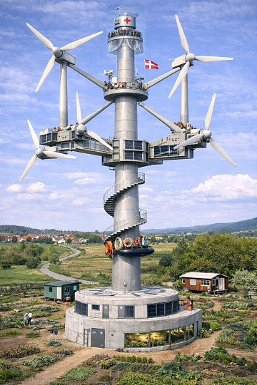 Jeg ved da heller ikke, hvad den helikopter skal være der for, og vindmøllevingen kan ikke engang dreje rundt for alt det udvendige tårngrej, som hænger for højt.