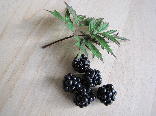 Vi har i dag plukket disse bræ i skoven i den tro, at det var korbær. Ifølge vores flora er det hverken korbær eller brombær, da bladene ser meget anderledes ud. Mon nogen kender bærret og kan fortælle lidt om det. Det smager udmærket. Jeg kunne tænke mig at lave lidt marmelade deraf.