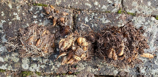 Jeg omlægger min have og graver mange gamle buske op. I forbindelse med opgravning støder jeg på mange forskellige løg, og jeg er ikke i stand til at skelne dem fra hinanden rent arts-mæssigt, kun hvad udseendet angår. Kan nogen hjælpe mig med at opklare, hvilke løg, der er tale om? Jeg har flere fotos, men kan åbenbart kun vedhæfte 1 ad gangen.