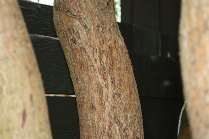 Der er imidlertid sket det, at stammen en begyndt at sprække, og mit træ står nu og smider visne blade, som i efteråret. Der er stadig masser af grønne blade, men der er kommer flere visne områder i kronen, og som sagt fælder det en hel del...