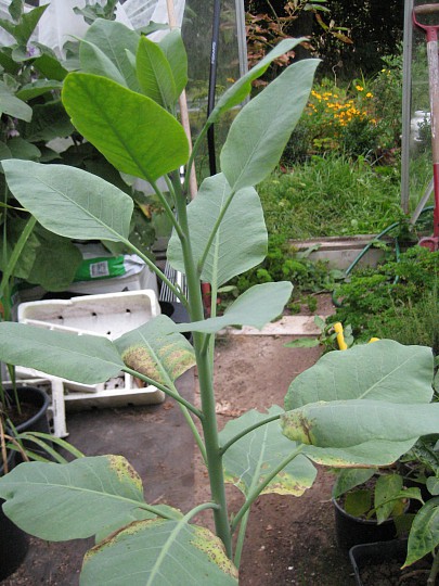 Planten har en kraftig stamme og er ved at sætte sideskud.