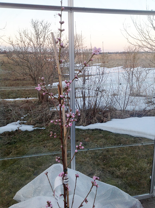 Mit ferskentræ blomstrer i sit drivhus, og der ligger en del sne udenfor – med udsigt til mere kulde. Jeg har ikke umiddelbart mulighed for at varme op i drivhuset. Har I et råd, så jeg måske kan få lidt frugt i år?